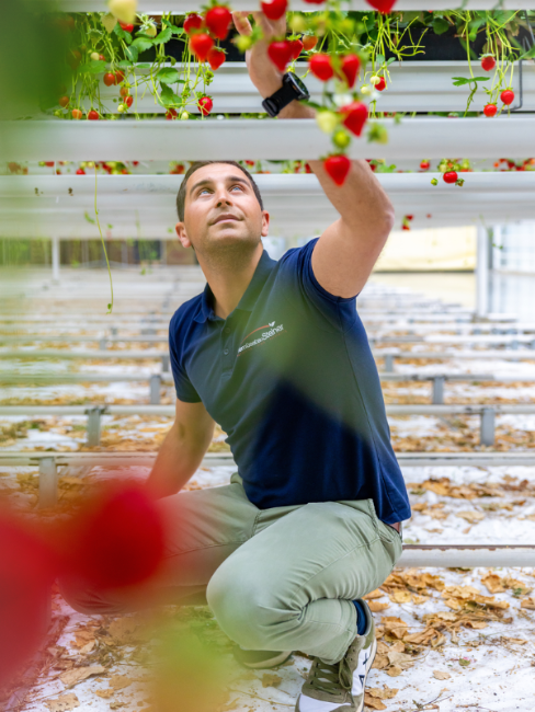 Durch die Leitungen am Boden der Gewächshäuser fließt heißes Wasser aus Steiners Geothermieanlage und lässt unter anderem Erdbeeren das ganze Jahr wachsen.